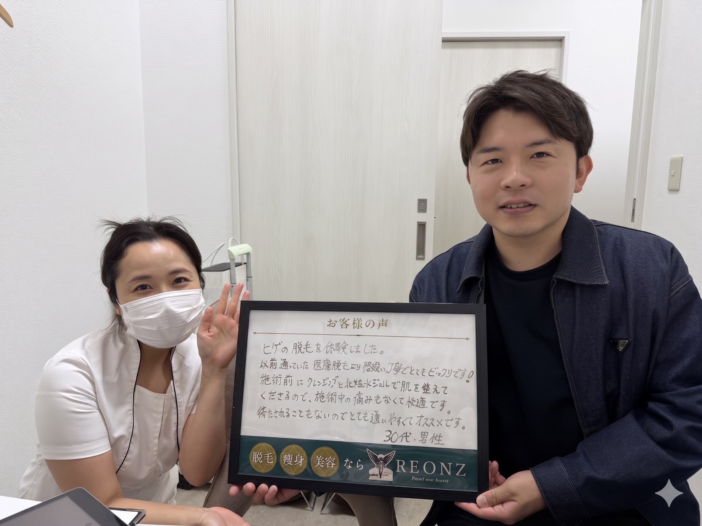 「格段に丁寧」というお言葉、スタッフ一同本当に励みになります!ヒゲ脱毛はどうしても痛みが心配な箇所ですが、事前の保湿ケアをしっかり行うことで、驚くほど快適に受けていただけますよね。