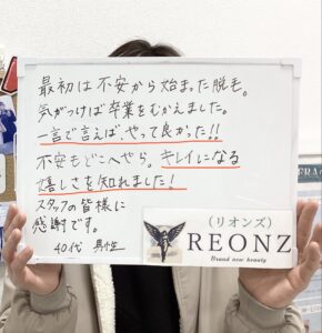 本日、当サロンを卒業された40代男性のお客様から、これ以上ないほど嬉しいメッセージをいただきました!